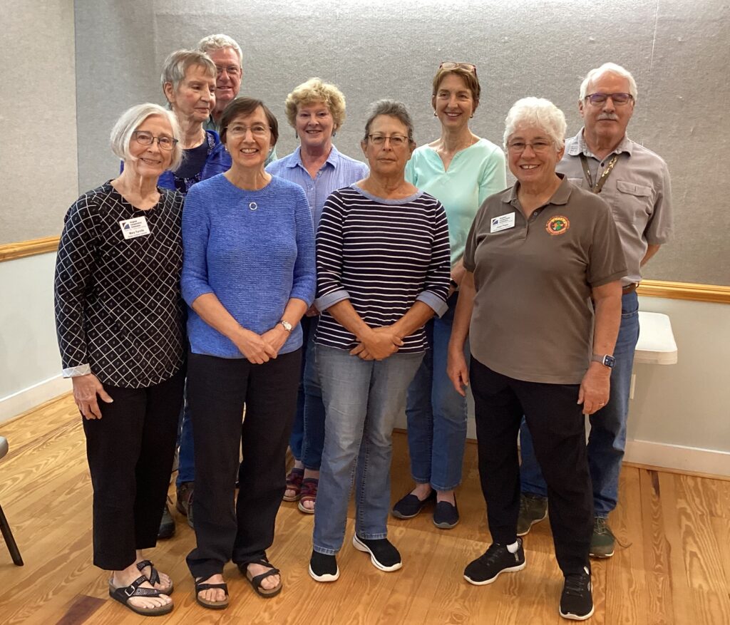 Guest speaker for the September 17, 2025 General Membership Meeting was Joan Pope, EMG from Central Rappahannock Unit. Joan worked at the US Army Corps of Engineers for many years as a coastal scientist. She presented an introduction to the US Army Corps of Engineers and its mission, as well as information about the Master Gardeners Association of Central Rappahannock Area, and the water steward program and coordination with NNMG SEP. Joan joined the NNMG volunteers (pictured below) to complete a project requirement for their Advanced Water Steward certificate.
