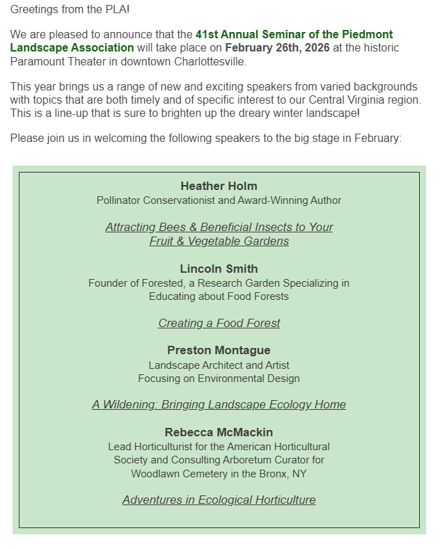 Register NOW for the 8th Annual Prince William Native Plant Symposium on February 14, 2026!