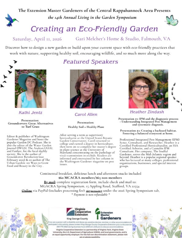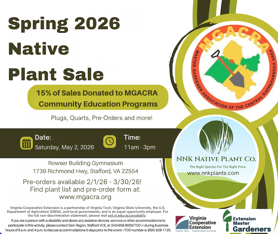 Registration for the 8th Annual Prince William Native Plant Symposium on February 14, 2026, is now open. The event takes place on the Manassas Campus of George Mason University. Keynote speaker is William Cullina, executive director of the Morris Arboretum in Pennsylvania and an author of several books on native plant cultivation. The symposium also includes 18 break-out sessions with each participant having the opportunity to attend 3. The symposium is offered both in-person and virtually. Click here to register.